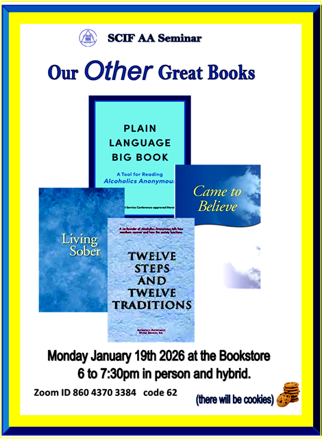 Join us for a seminar and discussion about all conference-approved AA literature. There will be cookies!